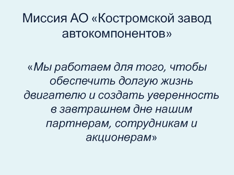 Слайд 2Миссия АО «Костромской завод автокомпонентов»