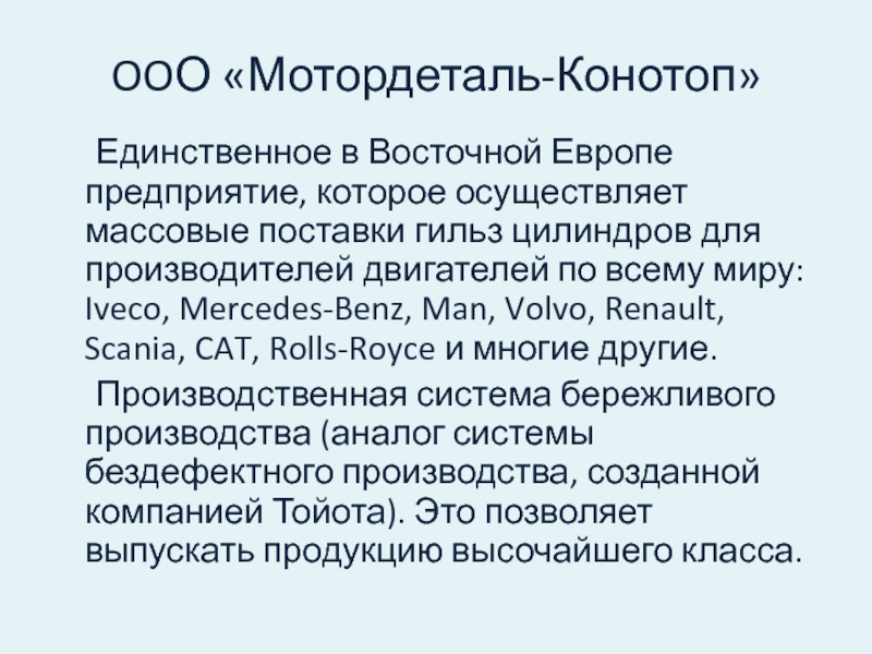 Слайд 4OOО «Мотордеталь-Конотоп»