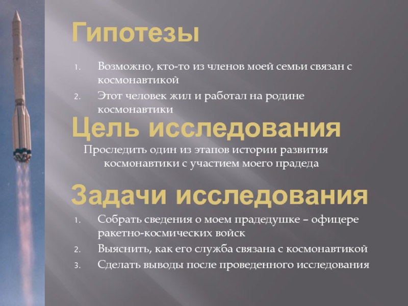 Проследить один из этапов истории развития космонавтики с участием моего прадеда