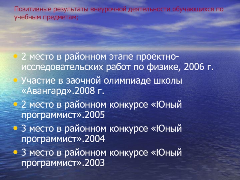 Награды: 2004 год. Благодарственное письмо РОО за подготовку призеров конкурса «Юный программист». 2005 год. Почетная грамота Отдела образования Нурлатского района и города Нурлат .
