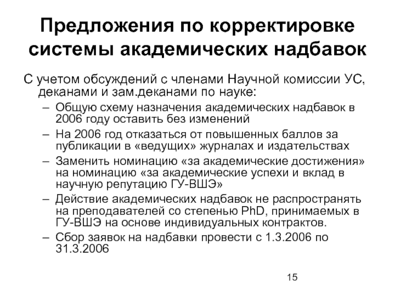 Информация к заседанию Ректората ГУ-ВШЭ 19.12.2005