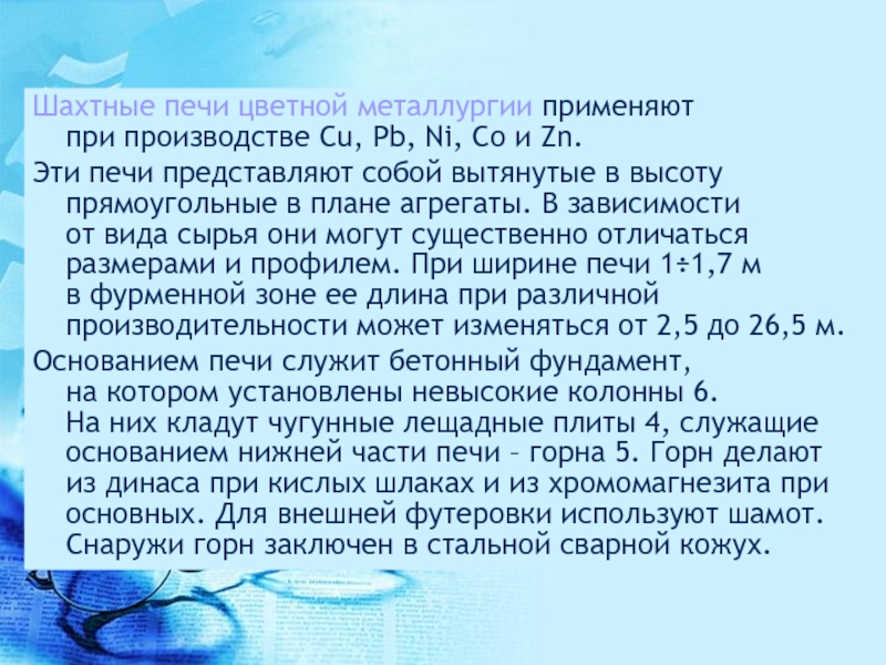 Слайд 25Шахтные печи цветной металлургии могут иметь