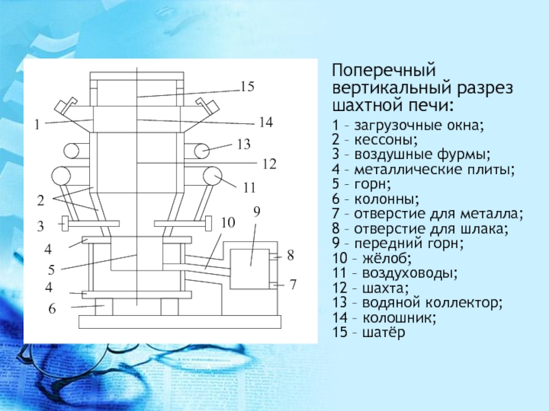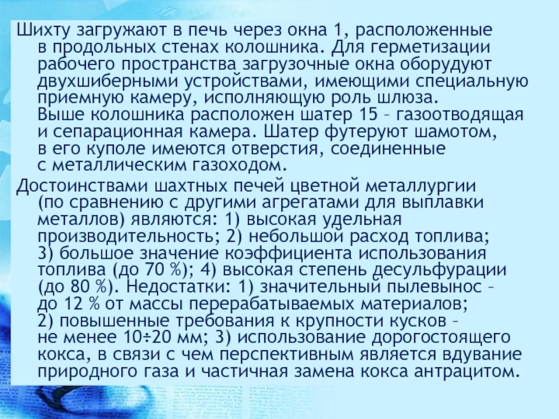 Слайд 19Шихту загружают в печь через окна 1, расположенные