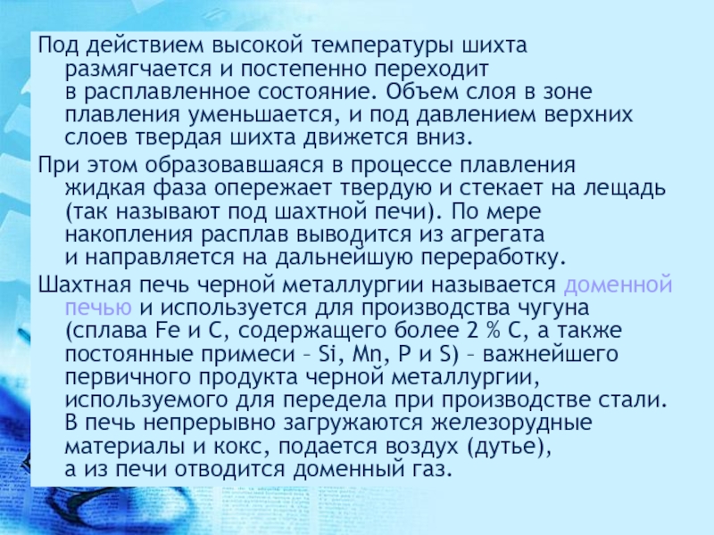 Слайд 3Под действием высокой температуры шихта размягчается и постепенно переходит