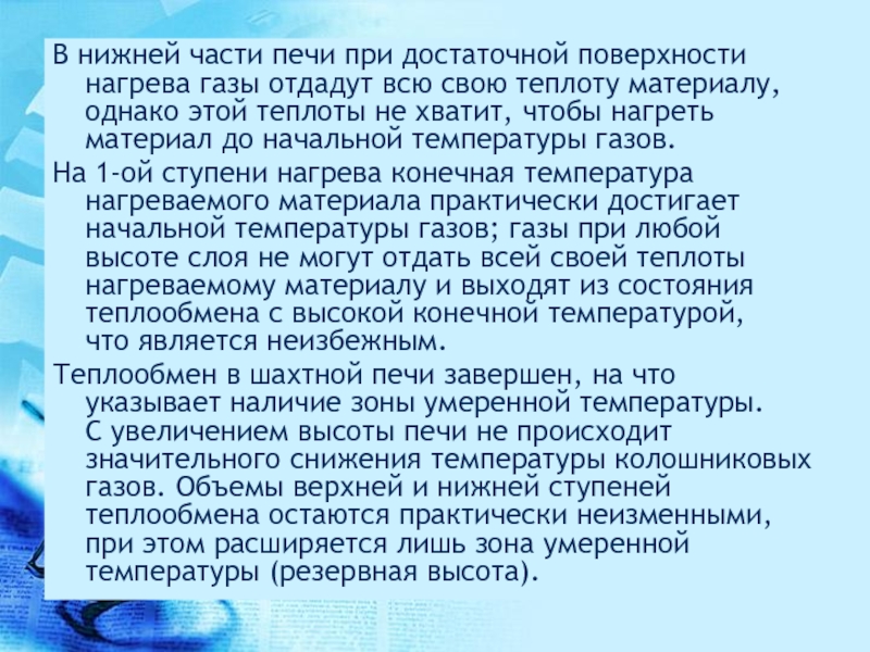 Слайд 23В нижней части печи при достаточной поверхности нагрева газы отдадут всю