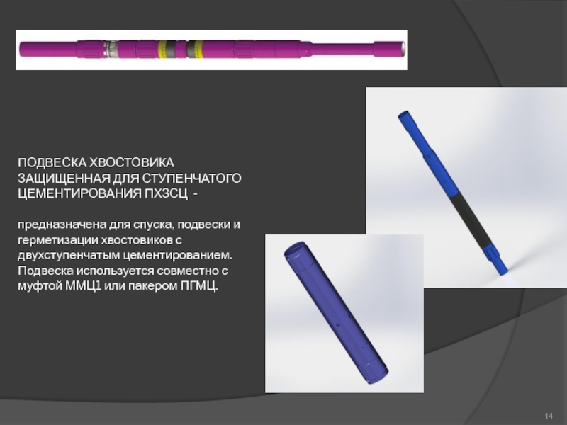 Слайд 14ПОДВЕСКА ХВОСТОВИКА ЗАЩИЩЕННАЯ ДЛЯ СТУПЕНЧАТОГО ЦЕМЕНТИРОВАНИЯ ПХЗСЦ -