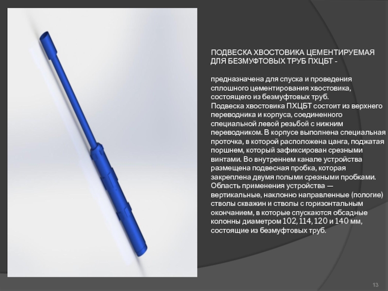 Слайд 13ПОДВЕСКА ХВОСТОВИКА ЦЕМЕНТИРУЕМАЯ ДЛЯ БЕЗМУФТОВЫХ ТРУБ ПХЦБТ -