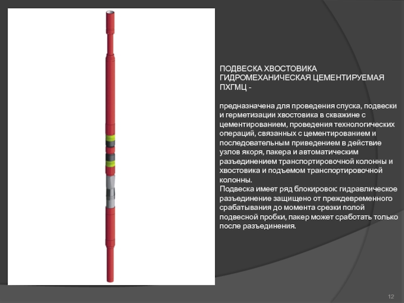 Слайд 12ПОДВЕСКА ХВОСТОВИКА ГИДРОМЕХАНИЧЕСКАЯ ЦЕМЕНТИРУЕМАЯ ПХГМЦ -