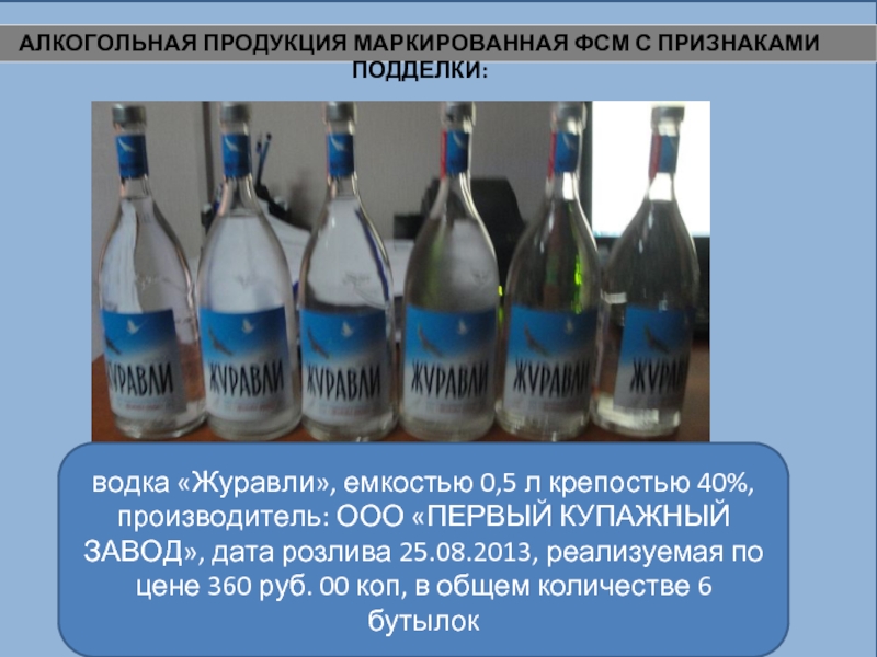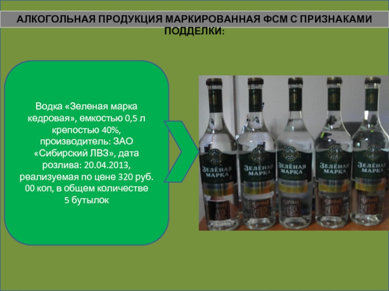 АЛКОГОЛЬНАЯ ПРОДУКЦИЯ МАРКИРОВАННАЯ ФСМ С ПРИЗНАКАМИ ПОДДЕЛКИ: