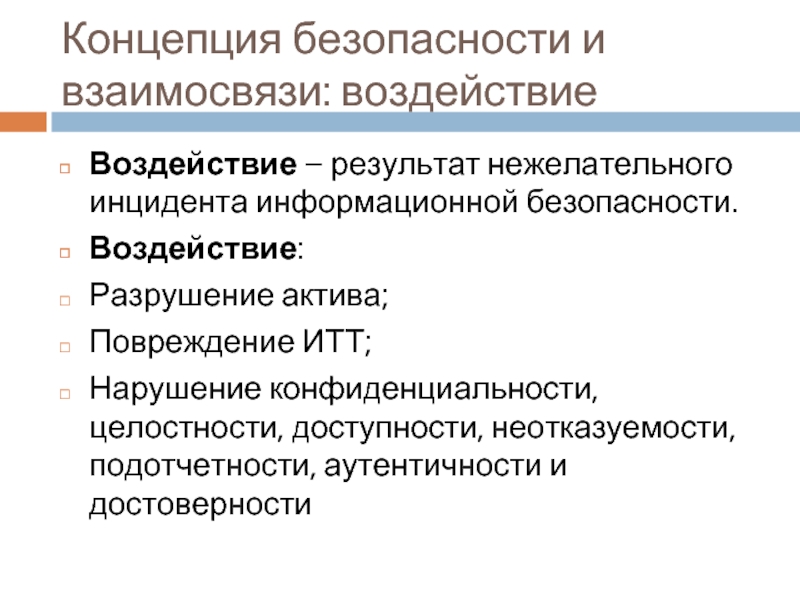 Слайд 8Концепция безопасности и взаимосвязи: воздействие