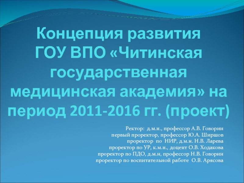 ГОУ ВПО «Читинская государственная медицинская академия» на период 2011-2016