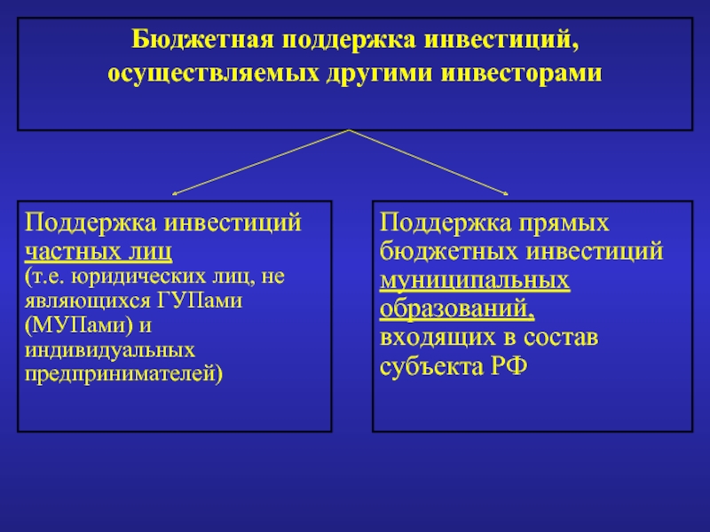 Исключение - инвестиции в основные фонды ГУПов, которые могут осуществляться также в форме субсидий, кредитов, вложений в уставные фонды и государственных гарантий.