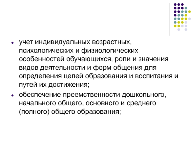 обеспечение преемственности дошкольного, начального общего, основного и среднего (полного) общего образования;