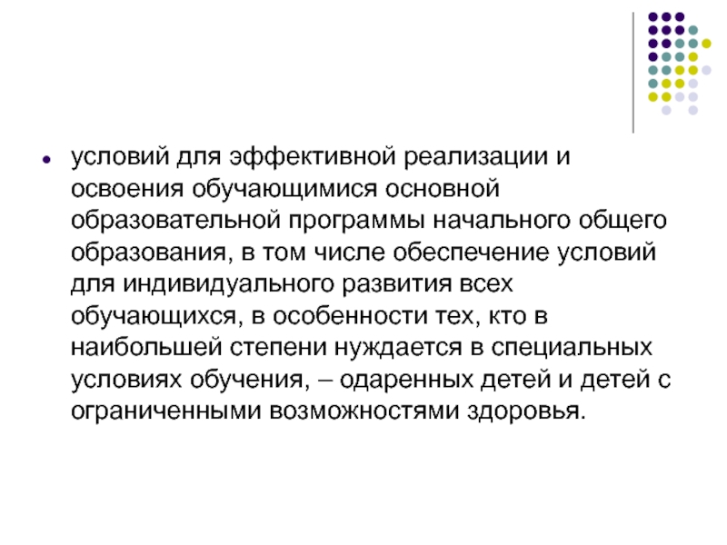 общего образования, в том числе обеспечение условий для индивидуального развития всех обучающихся, в особенности тех, кто в наибольшей степени нуждается в специальных условиях обучения, – одаренных детей и детей с ограниченными возможностями здоровья.