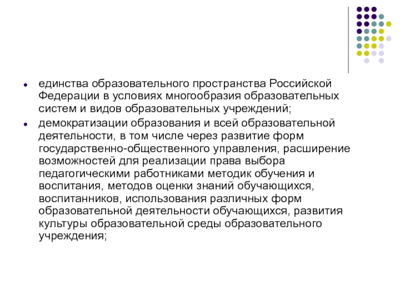 единства образовательного пространства Российской Федерации в условиях многообразия образовательных систем и