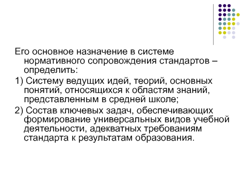 Его основное назначение в системе нормативного сопровождения стандартов – определить: