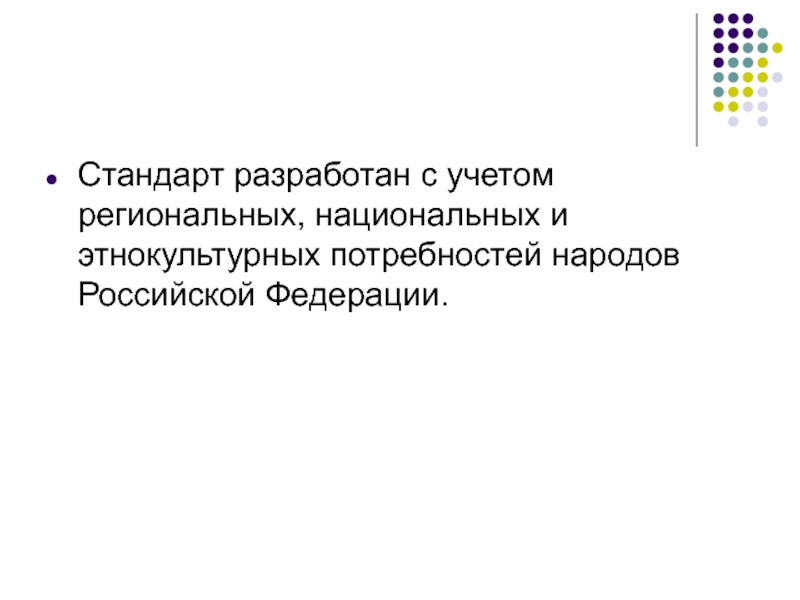 Стандарт разработан с учетом региональных, национальных и этнокультурных потребностей народов Российской