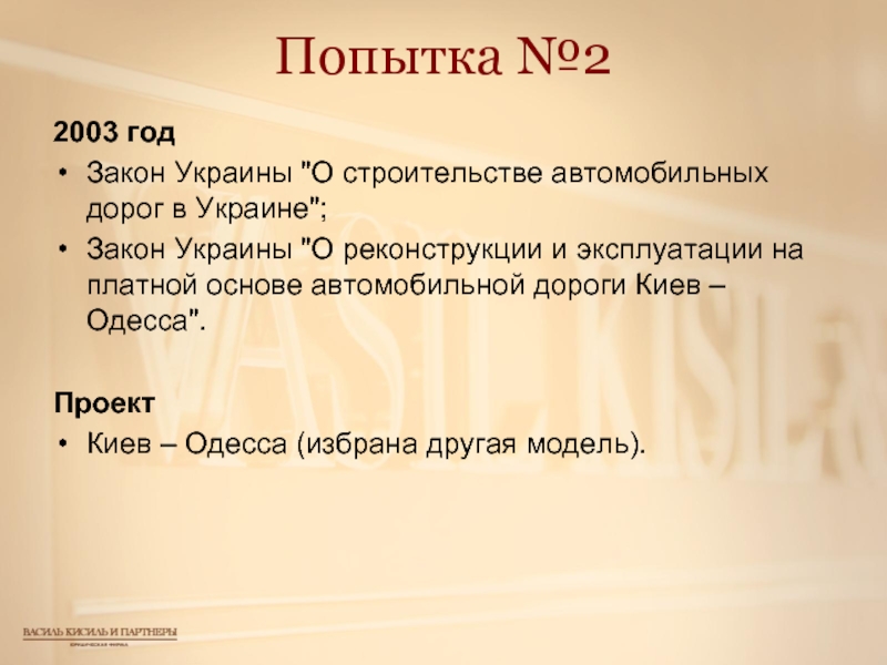 "О реконструкции и эксплуатации на платной основе автомобильной дороги Киев – Одесса".