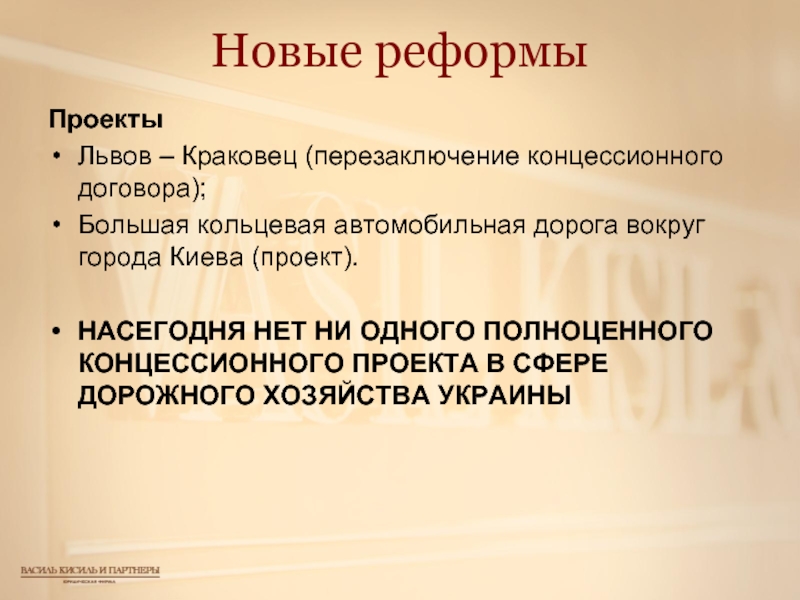 НАСЕГОДНЯ НЕТ НИ ОДНОГО ПОЛНОЦЕННОГО КОНЦЕССИОННОГО ПРОЕКТА В СФЕРЕ ДОРОЖНОГО ХОЗЯЙСТВА УКРАИНЫ