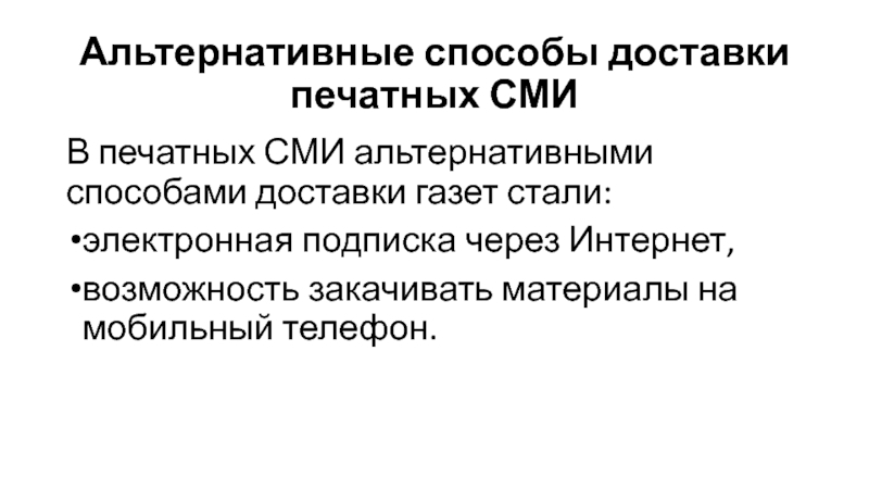 Слайд 60Альтернативные способы доставки печатных СМИ