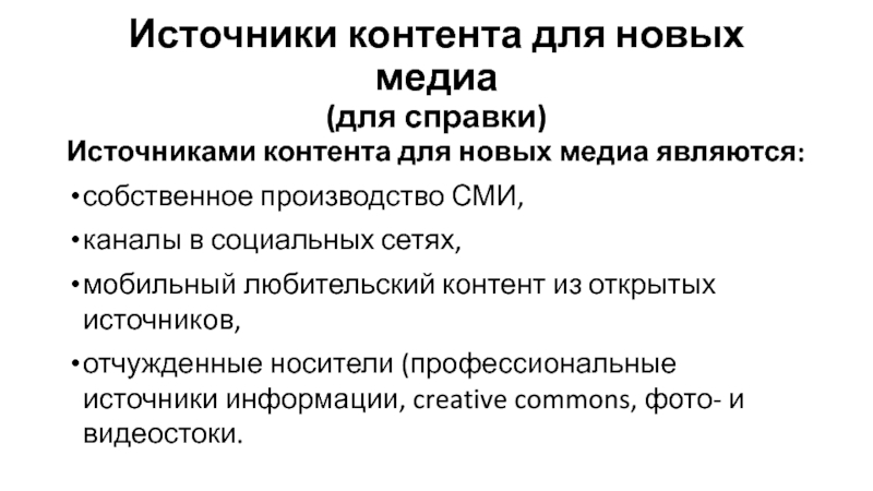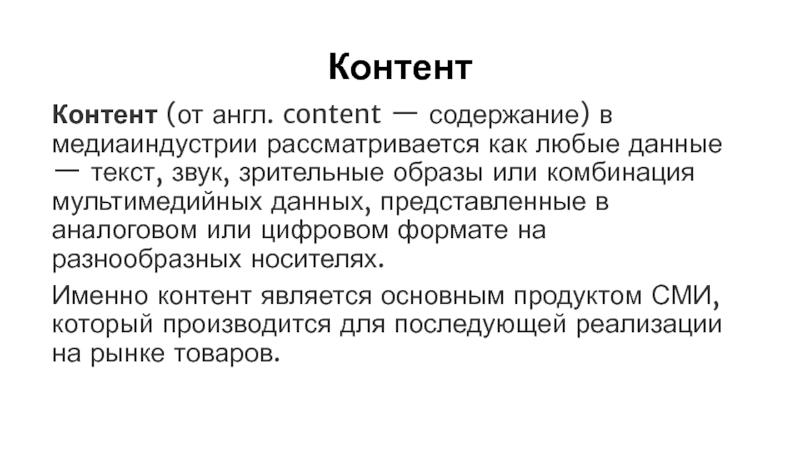 Именно контент является основным продуктом СМИ, который производится для последующей реализации на рынке товаров.