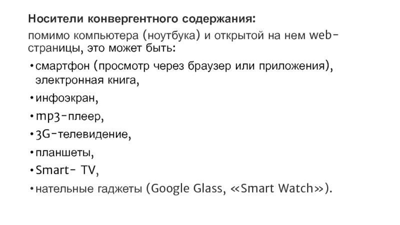 Слайд 63Также следует отметить, что конвергенция — это процесс сближения различных платформ,