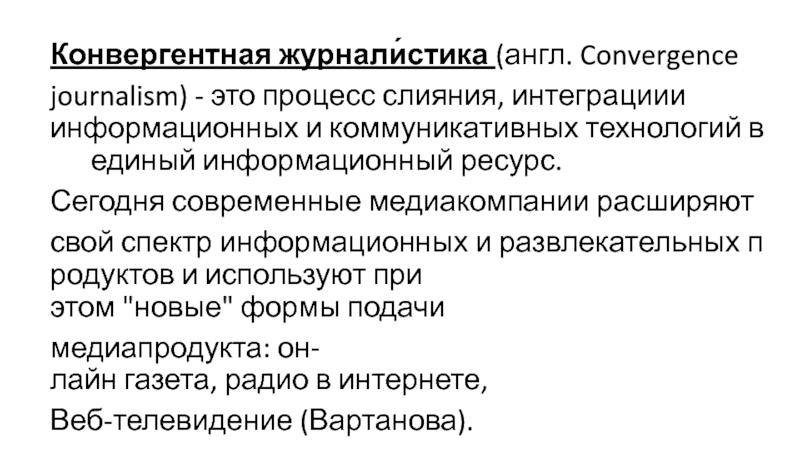 Слайд 1Конвергенция, конвергентная журналистика; мультимедиа, мультимедийность: