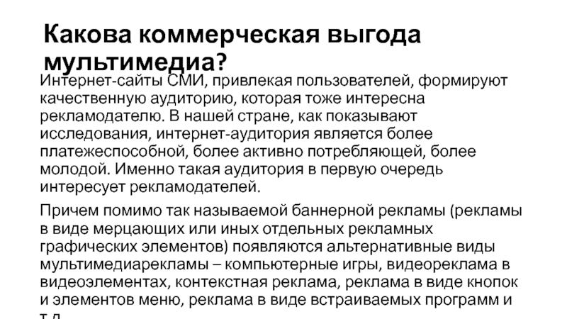 Слайд 58Какова коммерческая выгода мультимедиа?