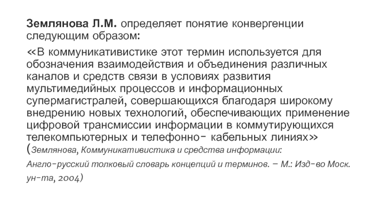 Слайд 9Землянова Л.М. определяет понятие конвергенции следующим образом: