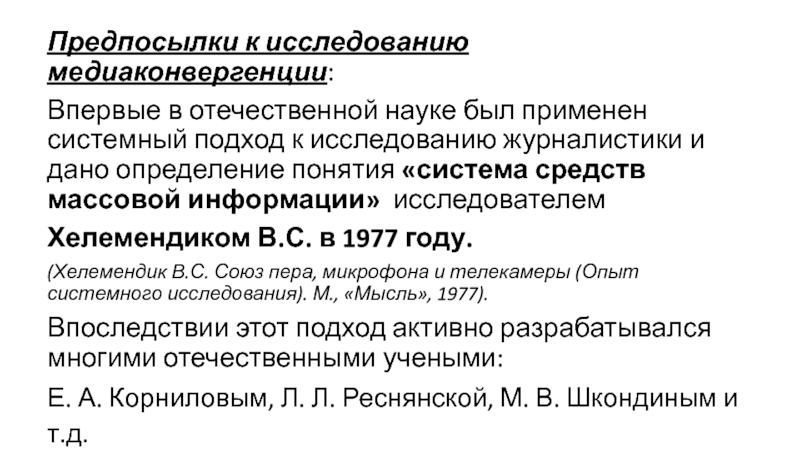 Слайд 4Предпосылки к исследованию медиаконвергенции: