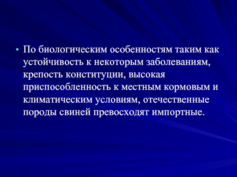 Слайд 4По биологическим особенностям таким как устойчивость к некоторым заболеваниям, крепость конституции,