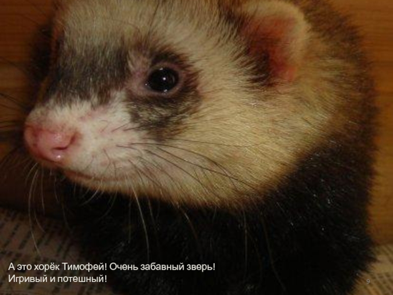 А это хорёк Тимофей! Очень забавный зверь! Игривый и потешный!