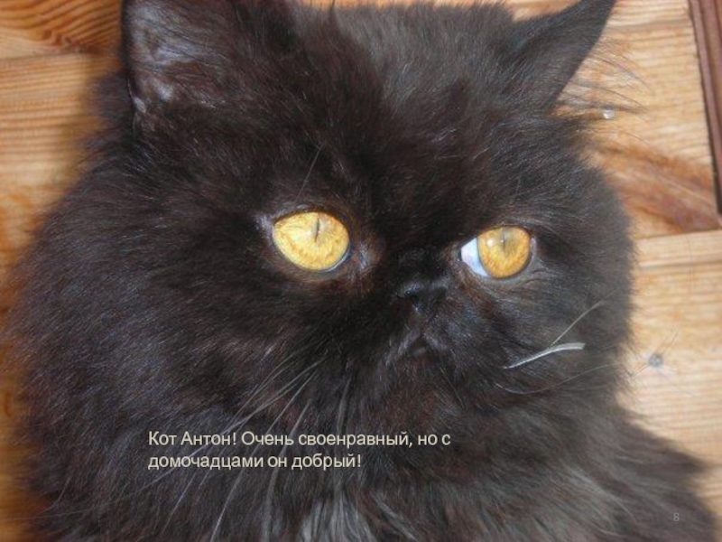 Кот Антон! Очень своенравный, но с домочадцами он добрый!