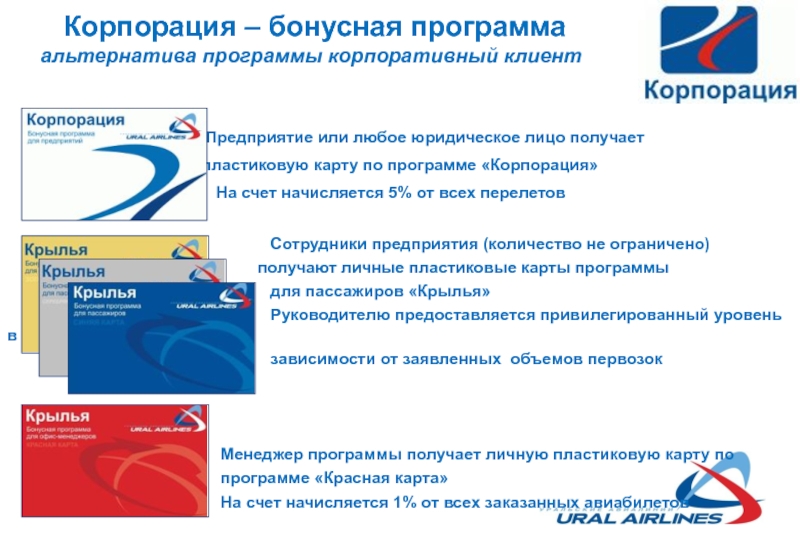 Слайд 4 Корпорация – бонусная программа альтернатива программы корпоративный клиент