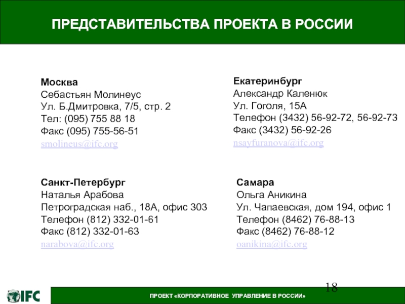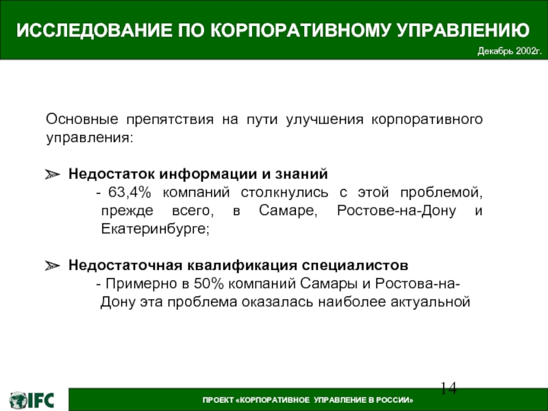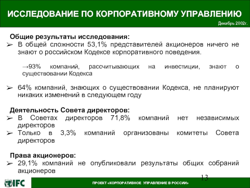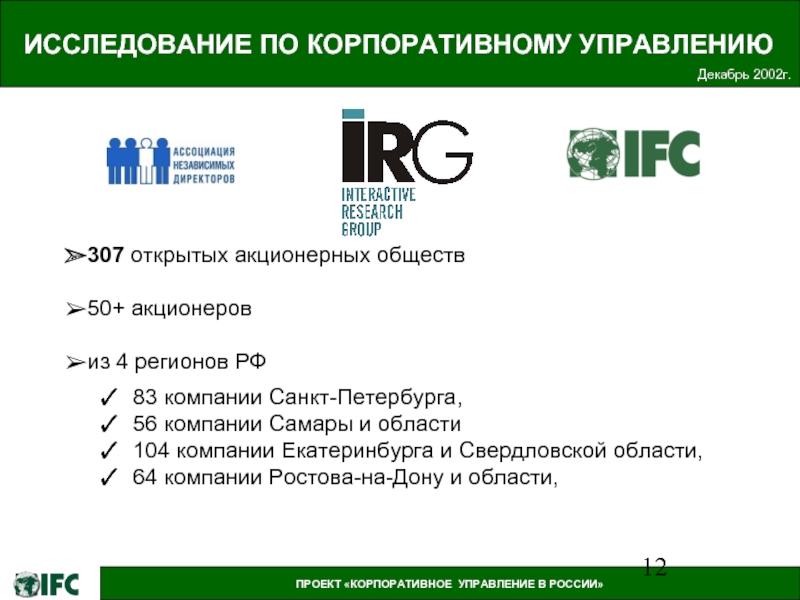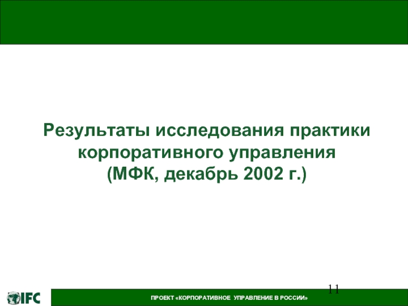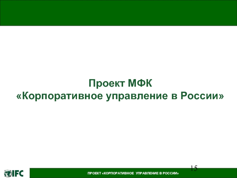 ПРОЕКТ «КОРПОРАТИВНОЕ УПРАВЛЕНИЕ В РОССИИ»