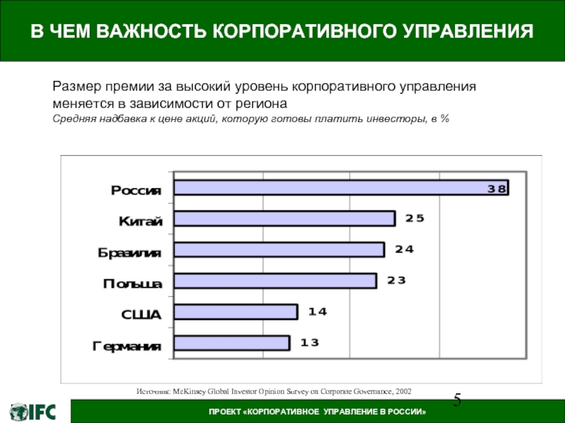 Источник: McKinsey Global Investor Opinion Survey on Corporate Governance, 2002