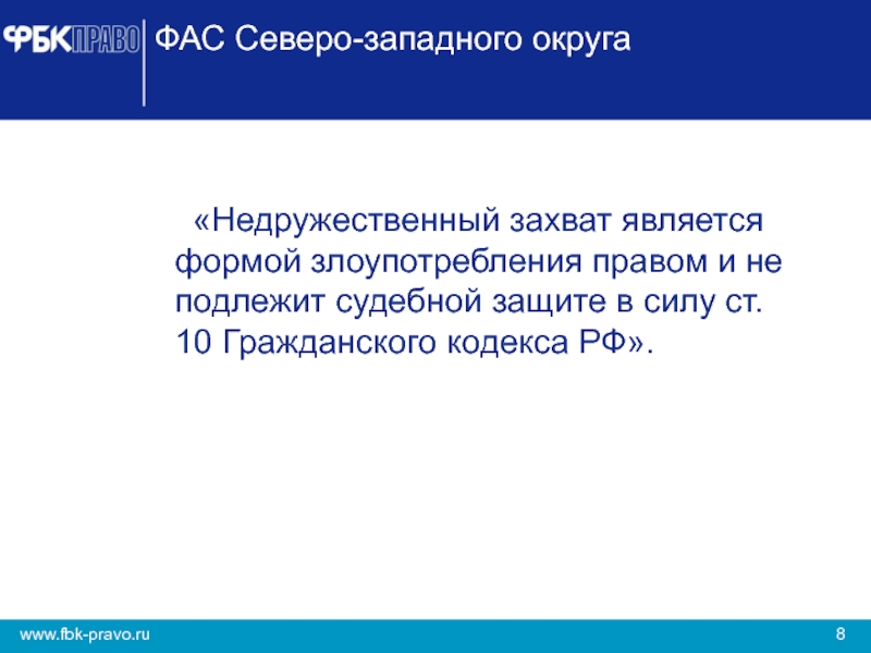 «Недружественный захват является формой злоупотребления правом и не подлежит
