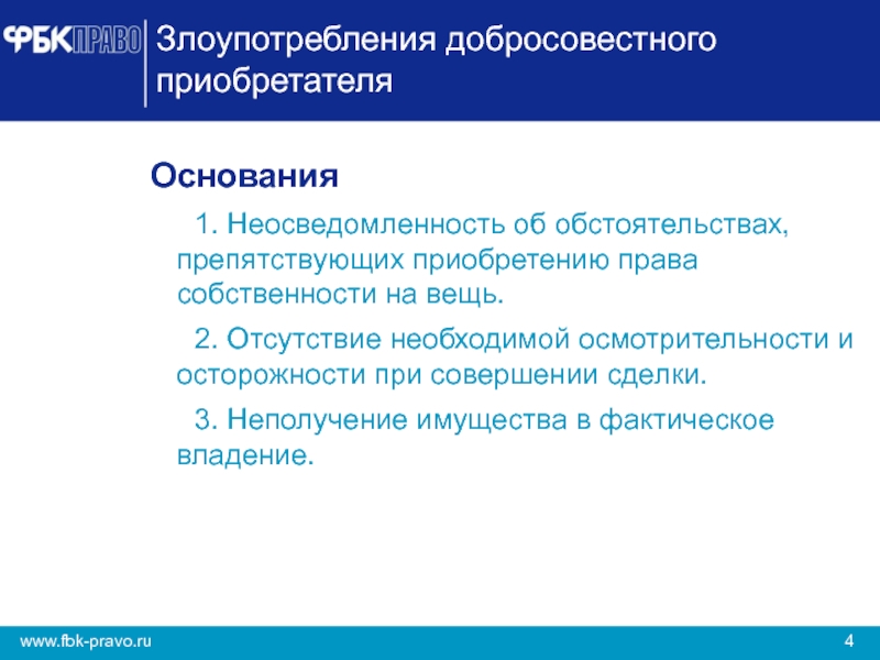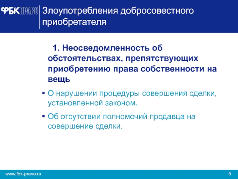 1. Неосведомленность об обстоятельствах, препятствующих приобретению права собственности на