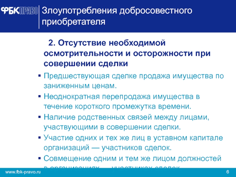 2. Отсутствие необходимой осмотрительности и осторожности при совершении сделки.