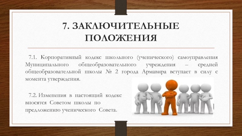 7.2. Изменения в настоящий кодекс вносятся Советом школы по предложению ученического Совета.