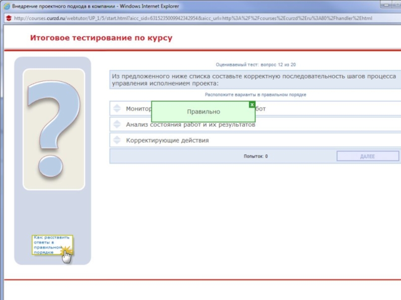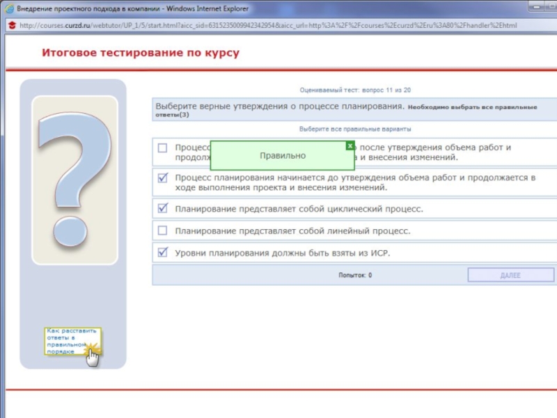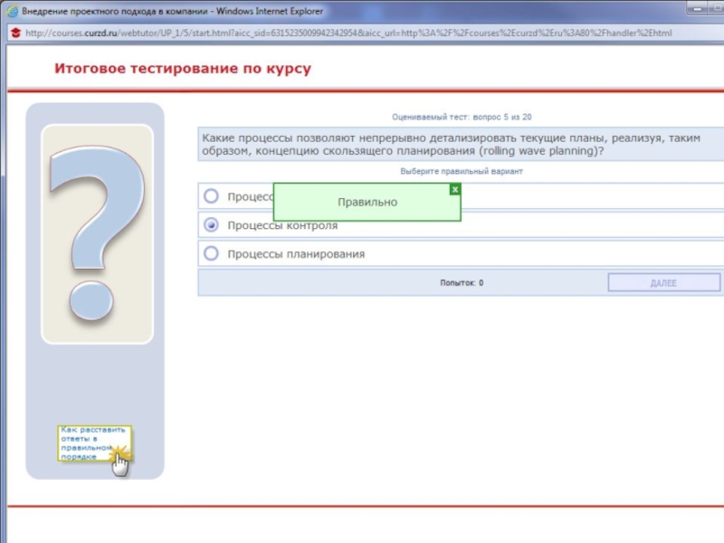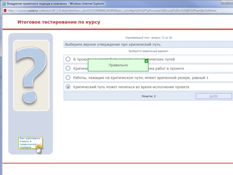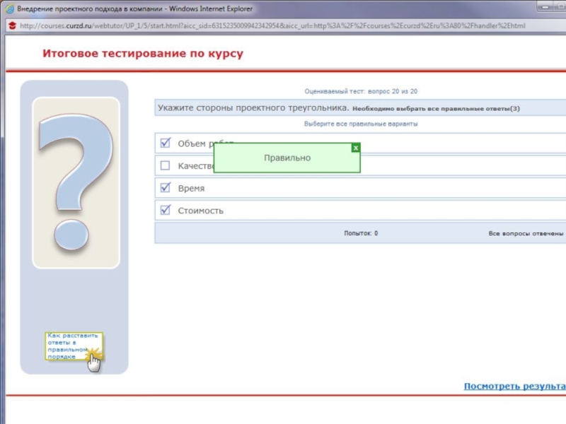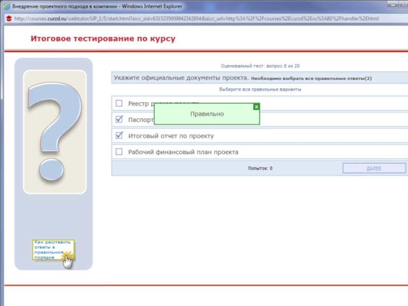 Корпоративный университет ОАО "РЖД". Итоговое тестирование по курсу "Внедрение проектного подхода в компании" презентация