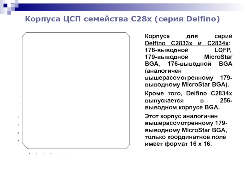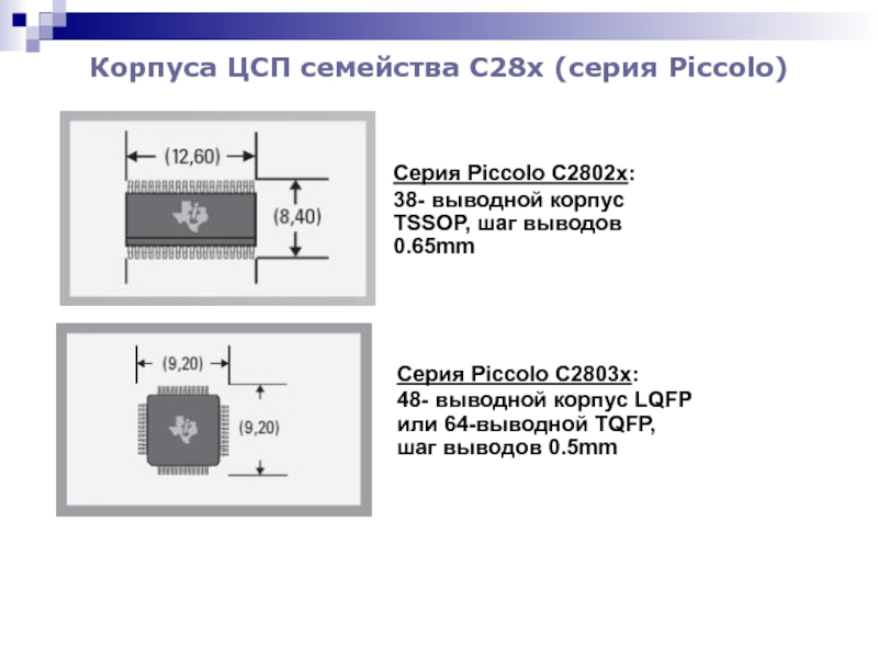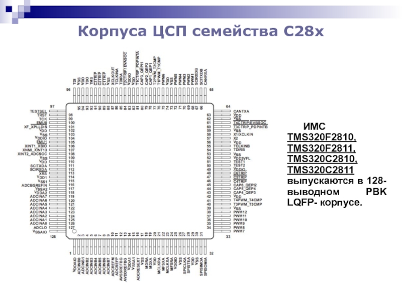 48- выводной корпус LQFP или 64-выводной TQFP, шаг выводов 0.5mm