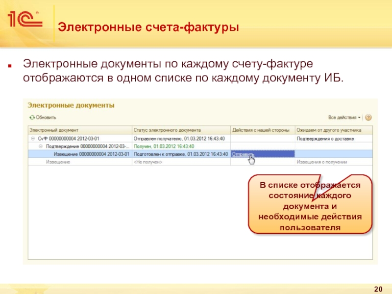 В списке отображается состояние каждого документа и необходимые действия пользователя