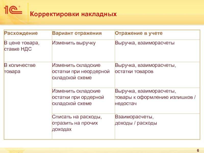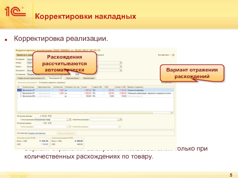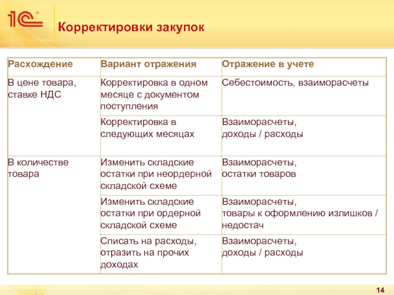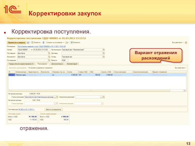 Вариант отражения расхождений
