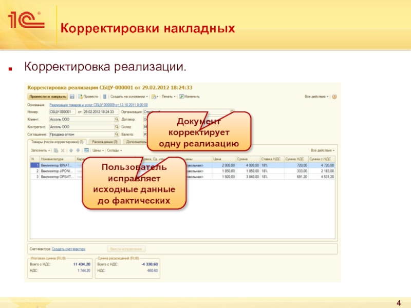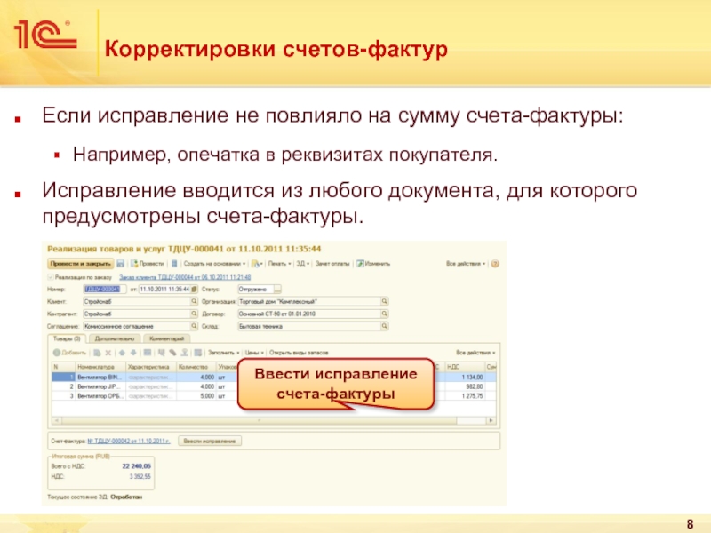 Пользователь вводит данные исправленного документа