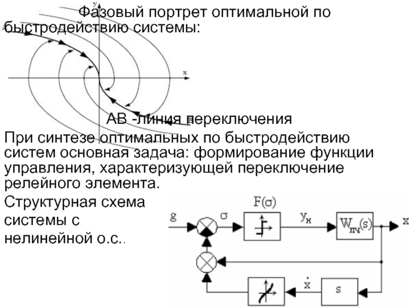 Слайд 21 Фазовый портрет оптимальной по быстродействию системы: