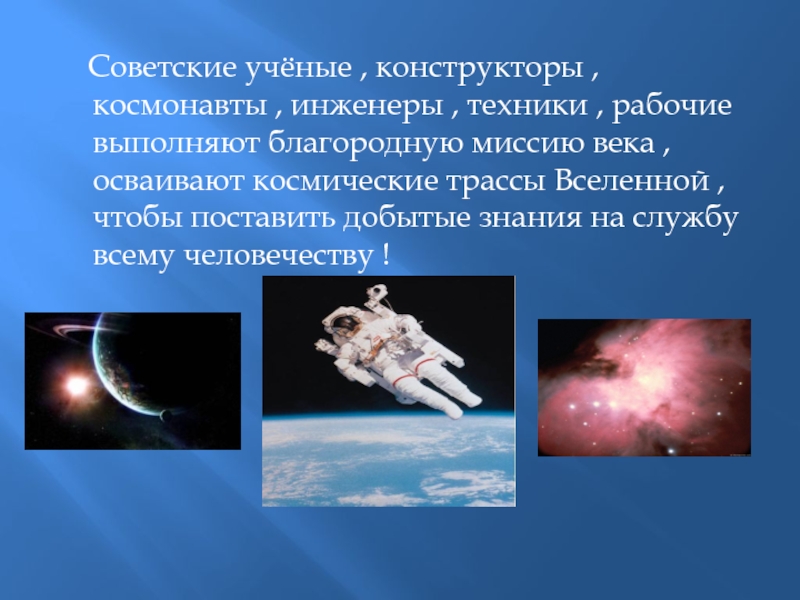 Советские учёные , конструкторы , космонавты , инженеры ,