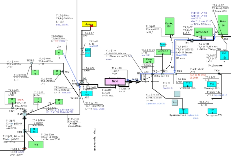 Т1,2 ф 40пп, В1 ø 63 пэ      L= 32; 2014 г