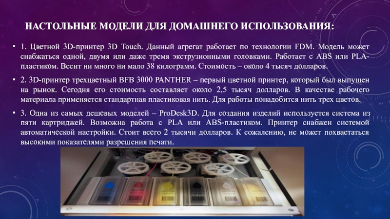 Слайд 4НАСТОЛЬНЫЕ МОДЕЛИ ДЛЯ ДОМАШНЕГО ИСПОЛЬЗОВАНИЯ: