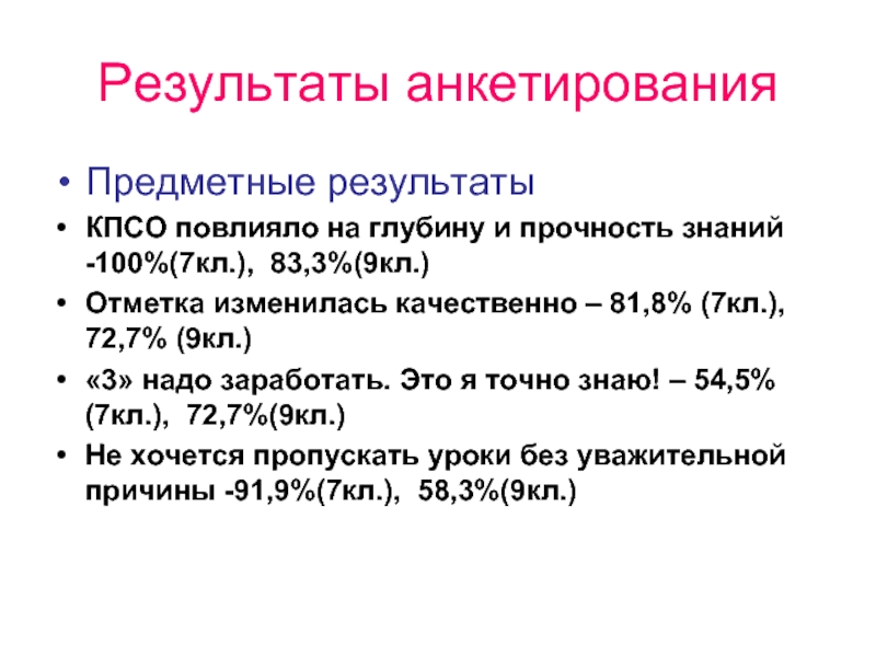 КПСО повлияло на глубину и прочность знаний -100%(7кл.), 83,3%(9кл.)